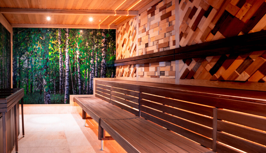 This classic wooden sauna's décor will transport you into the world of Vikings. Strengthen your body and relax your mind with aromatherapy.